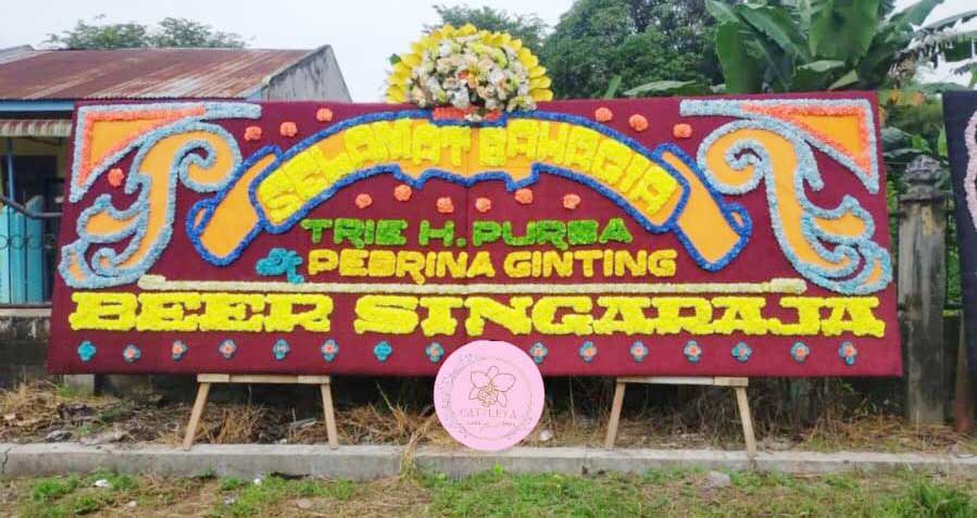 Karangan bunga papan gandeng model kota Medan ini dirangkai dengan tambahan 1 (satu) mahkota bunga tiruan (artifical) yang cantik di atas papan. Dengan paduan mahkota membuat papan kelihatan lebih cantik dan elegan. Cocok dipesan untuk segala jenis acara baik sukacita maupun dukacita.