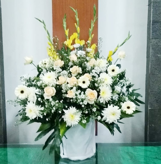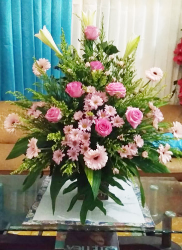 Rangkaian bunga meja tamu di rumah atau kantor untuk membuat suasana ruang tamu menjadi indah dan nyaman.