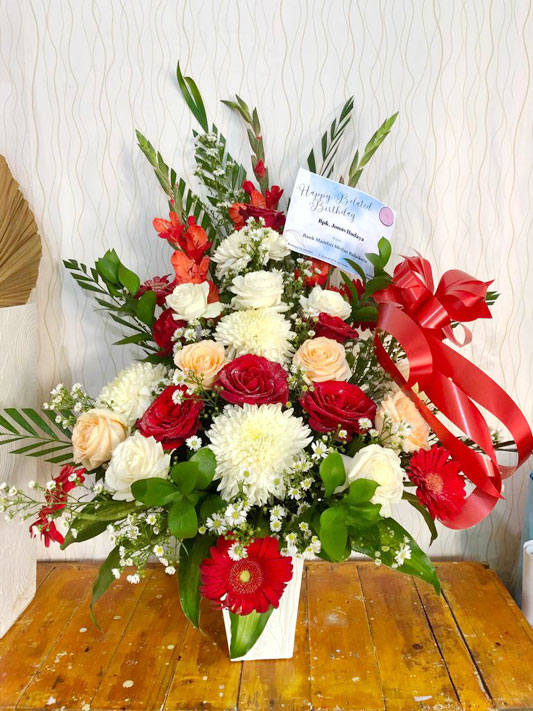Kami menjual rangkaian bunga meja hidup (bunga segar) minimalis, mewah dan murah untuk mempercantik ruang tamu di kantor atau rumah