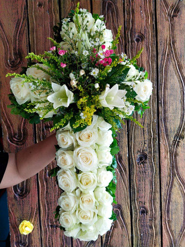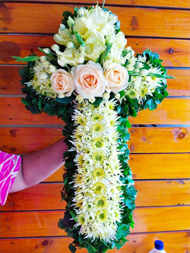 Rangkaian bunga salib untuk acara duka cita ini dirangkai dengan bahan bunga segar dan wangi. Karangan bunga bentuk salib ini melambangkan ungkapan turut berdukacita atau belasungkawa atas orang yang teleh meninggal dunia. Untuk anda yang mencari harga bunga salib di Medan kami jual dengan harga murah. Proses pembuatan cepat dan pengantaran ke rumah duka juga cepat. Untuk pemesanan, silahkan klik tautan (link) yang telah tersedia.