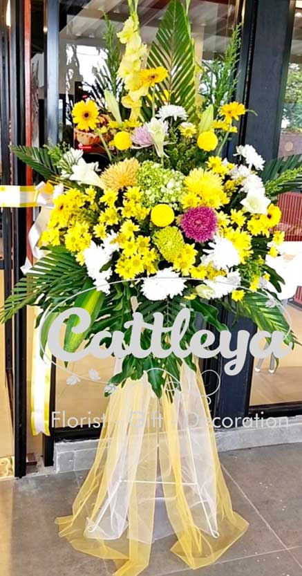 Rangkaian bunga ini memadukan beberapan jenis bunga segar berwarna warni dengan tambahan daun hijau membuat tampilan menjadi cantik. Biasanya di pesan untuk acara suka cita atau duka cita, ditempatkan dengan posisi berdiri memakai penyangga besi di dalam ruangan acara. Kami adalah toko bunga atau florist Medan yang siap terima pesanan karangan bunga standing untuk acara di kota Medan maupun luar kota. Hasil rangkaian cantik sesuai permintaan dan harga murah.