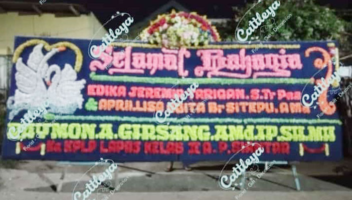 Karangan bunga papan gandeng model kota Medan ini dirangkai dengan tambahan 1 (satu) mahkota bunga tiruan (artifical) yang cantik di atas papan. Dengan paduan mahkota membuat papan kelihatan lebih cantik dan elegan. Cocok dipesan untuk segala jenis acara baik sukacita maupun dukacita.