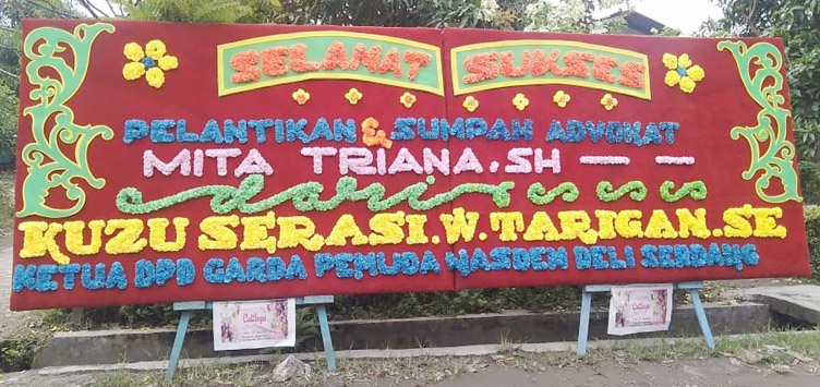 Bagi anda yang ingin pesan papan bunga Medan selamat sukses yang cantik tapi harga sewa yang murah segera hubungi kami. Hasil karangan sesuai dengan permintaan, proses rangkai cepat dan antar ke lokasi acara juga cepat. Pemesanan bisa di lakukan secara online melalui tautan yang tersedia atau offline dengan datang langsung ke toko kami.