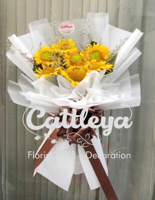 Kami toko bunga Medan siap terima pesanan pembuatan buket bunga matahari yang cantik, harga murah dan pengiriman yang cepat dan aman di kota Medan dan sekitarnya.