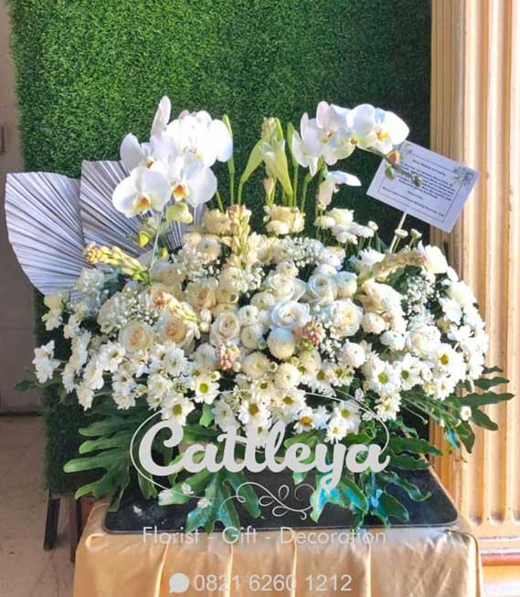 Rangkaian bunga meja ini dirangkai menggunakan bahan bunga segar, termasuk daun dan tangkai. Dimasukkan dalam suatu wadah atau vas untuk ditempatkan di ruang tamu. Kehadiran bunga meja ini bisa mempercantik ruang tamu kantor atau rumah.