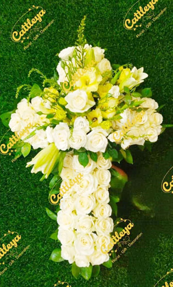 Kami menerima pemesanan karangan bunga salib untuk acara duka cita agama Kristen di Medan dengan rangkaian bunga segar dan wangi, serta harga yang sangat murah. Bunga ini dirangkai berbentuk salib sebagai simbol turut berdukacita untuk pemakaman.