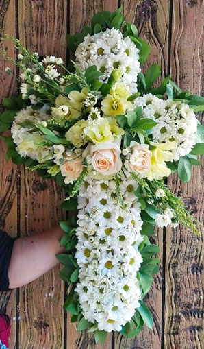 Karangan bunga ini dipesan saat orang yang dikasihi meninggal dunia. Biasanya dipesan oleh orang yang memeluk agama Kristen. Buat anda yang ingin pesan karangan bunga salib dukacita yang cepat dan murah, segera menghubungi kami toko bunga yang telah berpengalaman dan ahli. Pengantaran cepat dan aman ke rumah duka atau rumah persemayaman. Menerima pesanan di kota Medan dan luar kota.