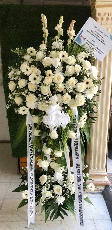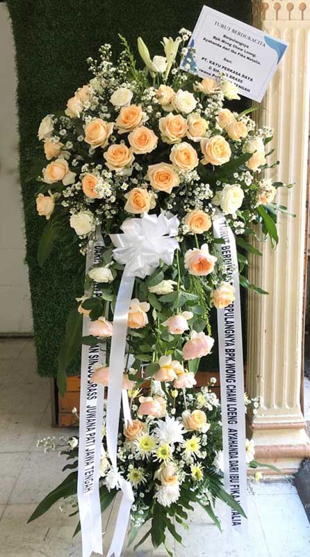 rangkaian bunga standing untuk acara dukacita 2 tingkat