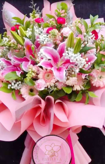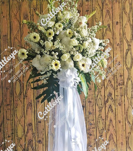Rangkaian bunga ini memadukan beberapan jenis bunga segar berwarna warni dengan tambahan daun hijau membuat tampilan menjadi cantik. Biasanya di pesan untuk acara suka cita atau duka cita, ditempatkan dengan posisi berdiri memakai penyangga besi di dalam ruangan acara. Kami adalah toko bunga atau florist Medan yang siap terima pesanan karangan bunga standing untuk acara di kota Medan maupun luar kota. Hasil rangkaian cantik sesuai permintaan dan harga murah.